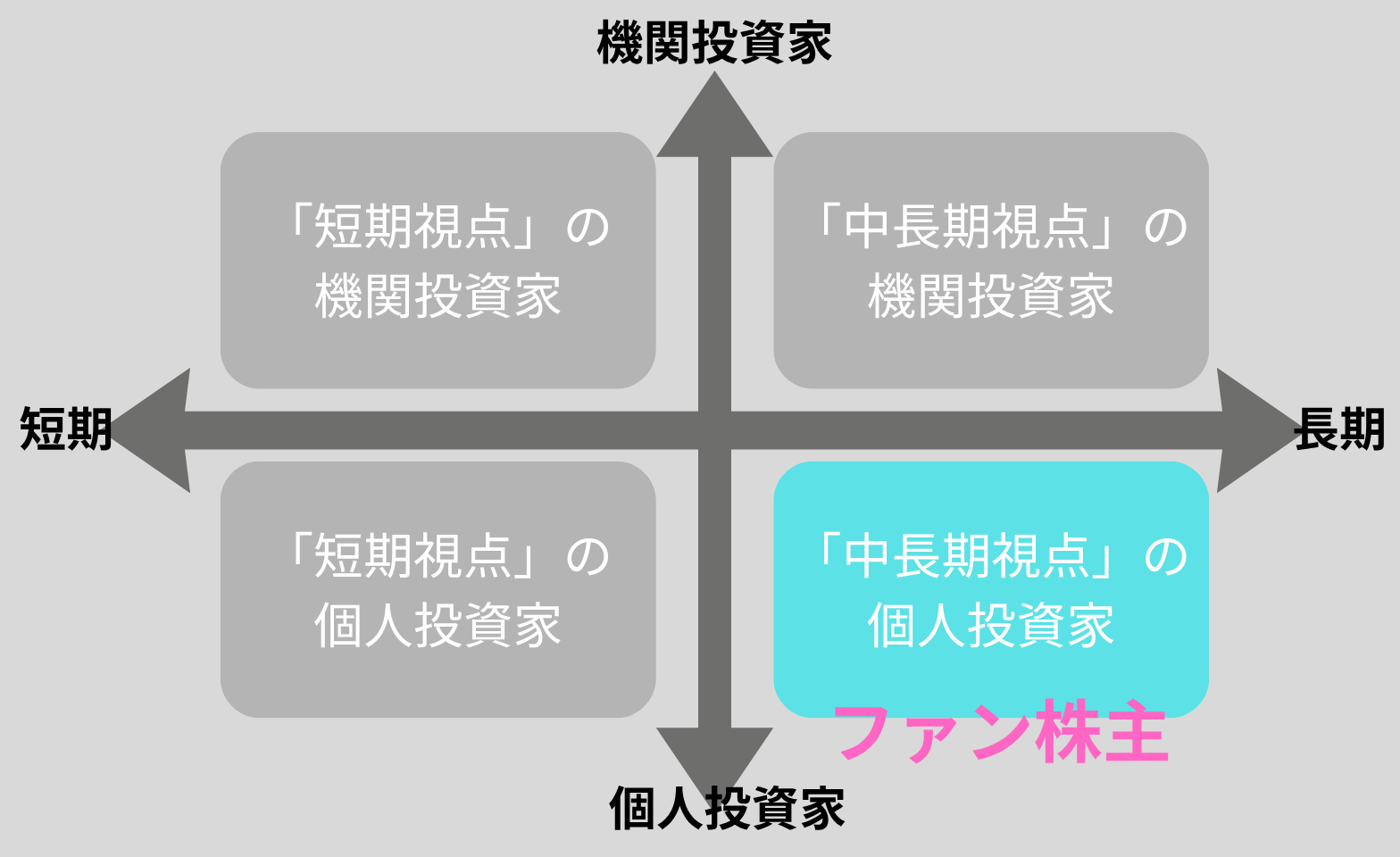 投資家をファンに変えることができるカテゴリとしては、C「中長期視点」の個人投資家に重点を置くべきだと思います。