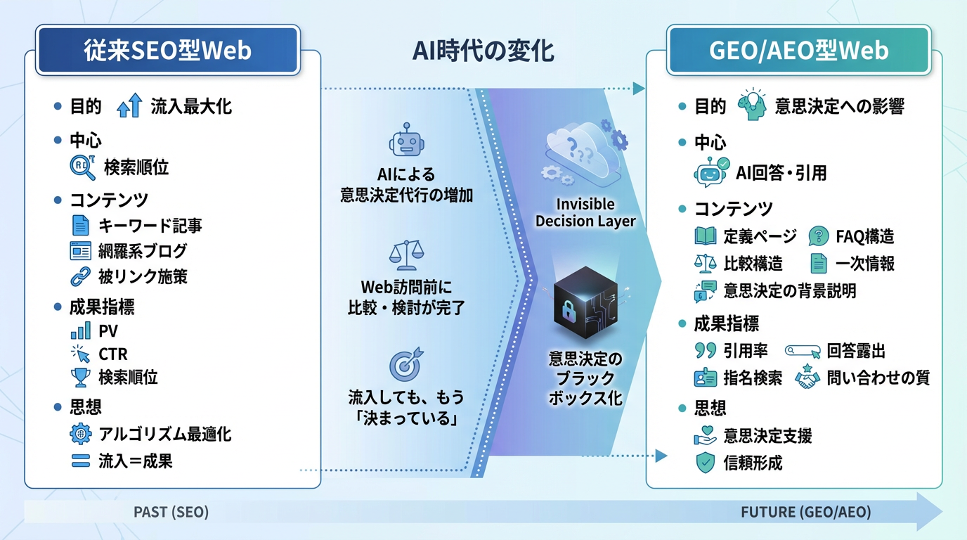 GEO/AEOとは?ゼロクリック時代にWebが"集客装置"でなくなる理由