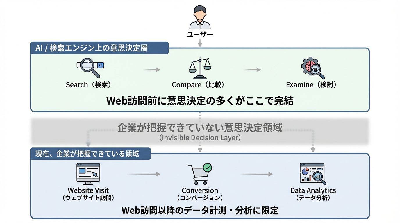 つまり、ユーザー行動が消えたのではなく、行動が発生する場所と、企業が計測している場所がズレ始めているという状況だと言えます。